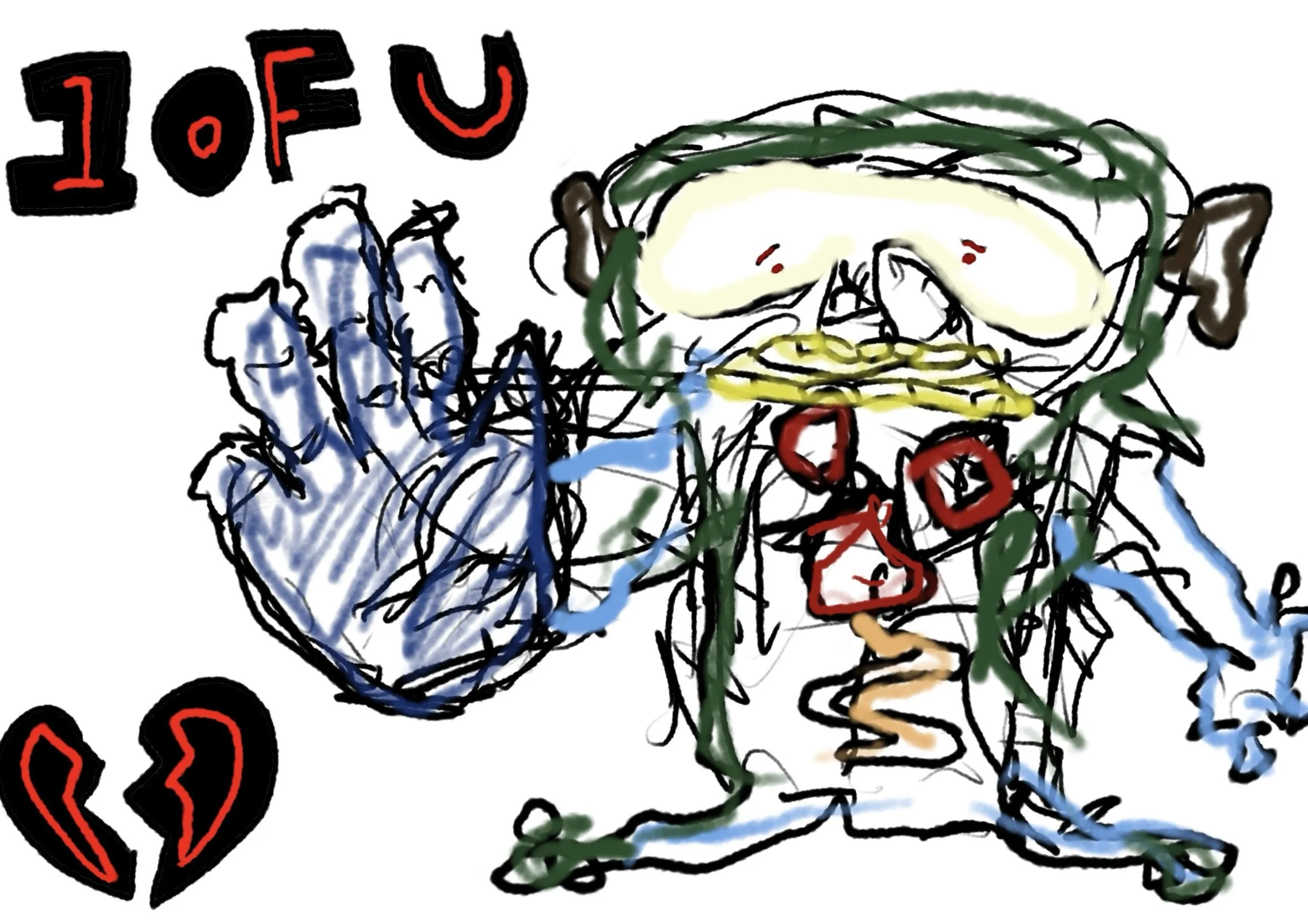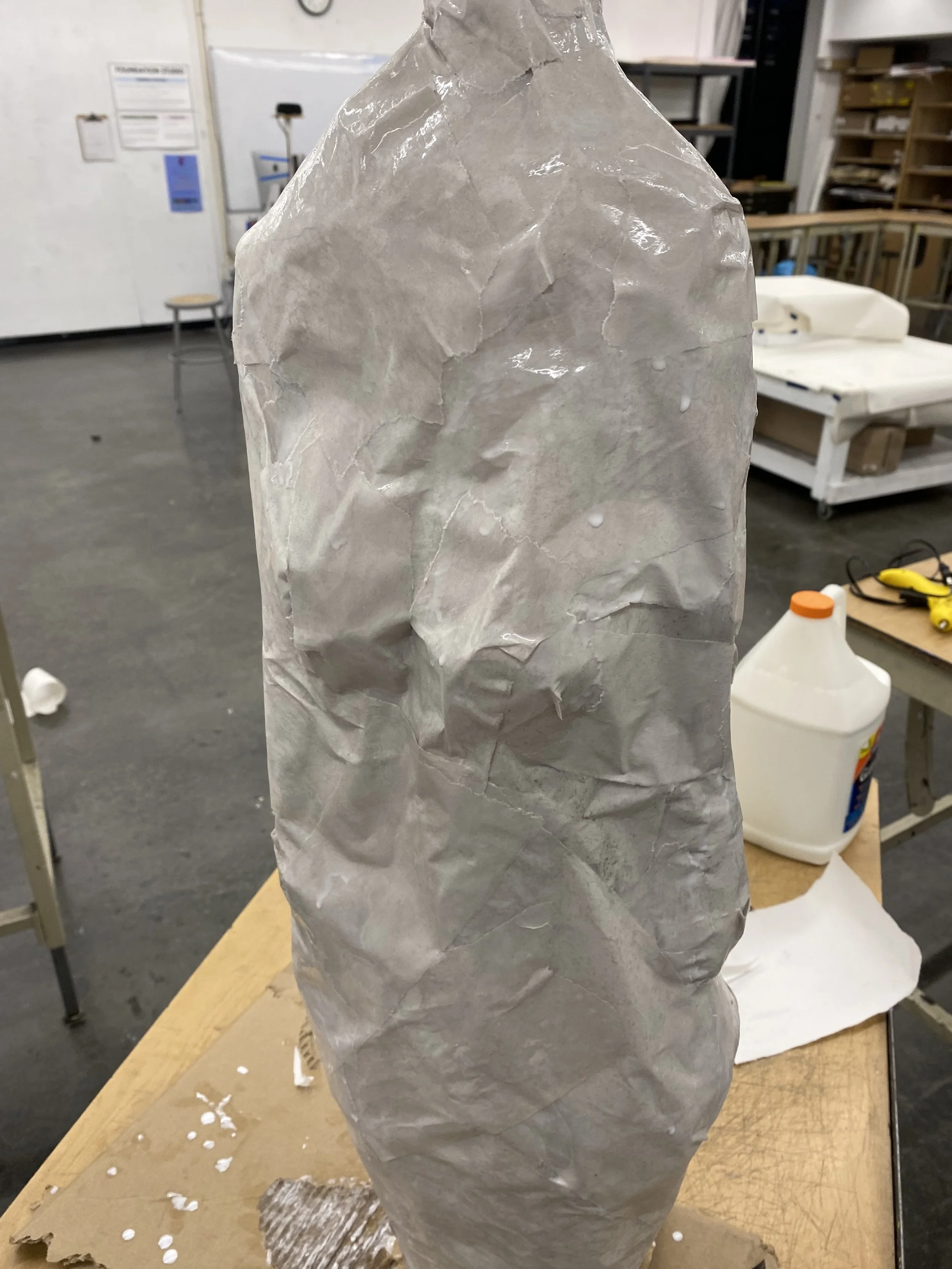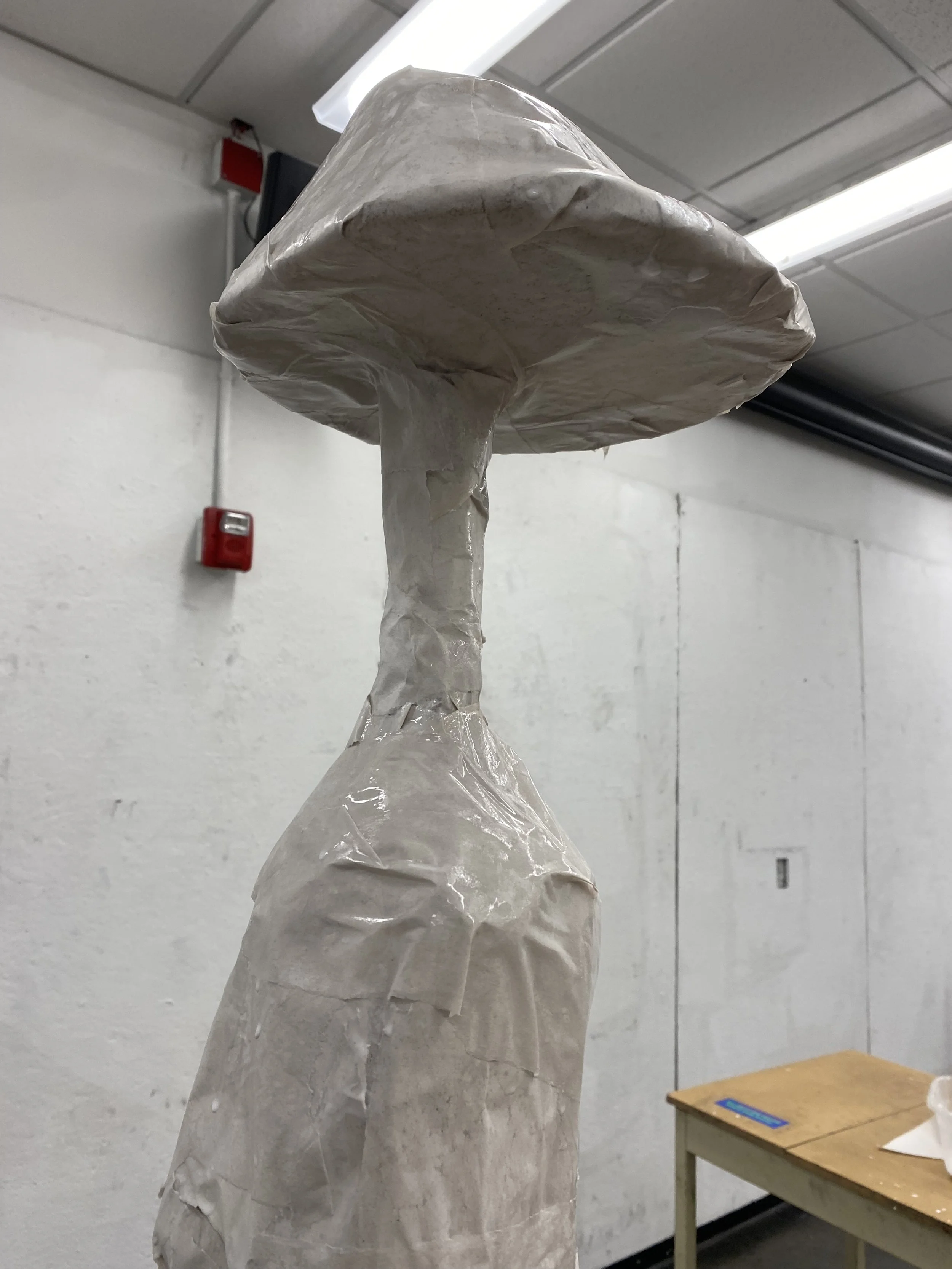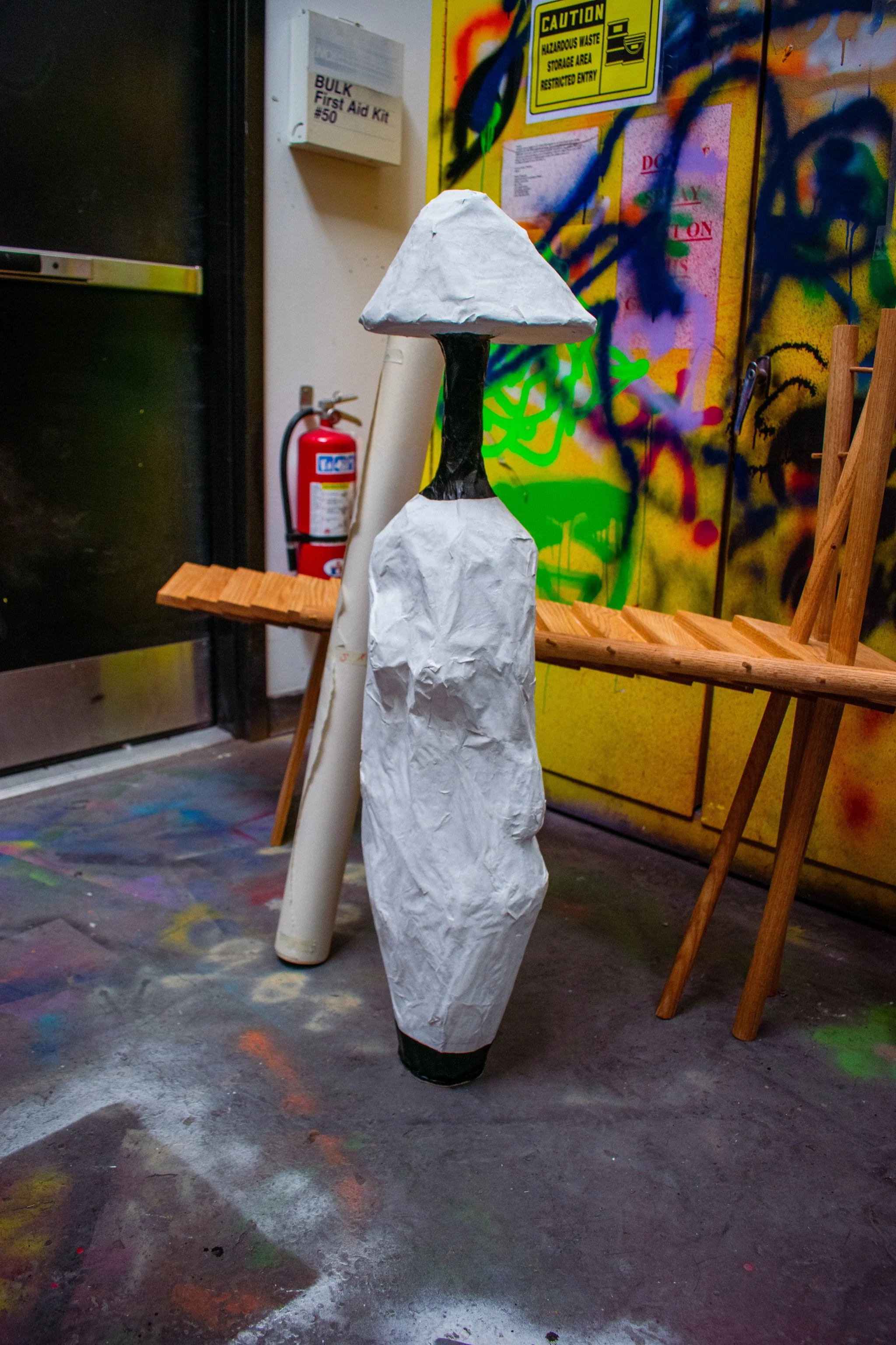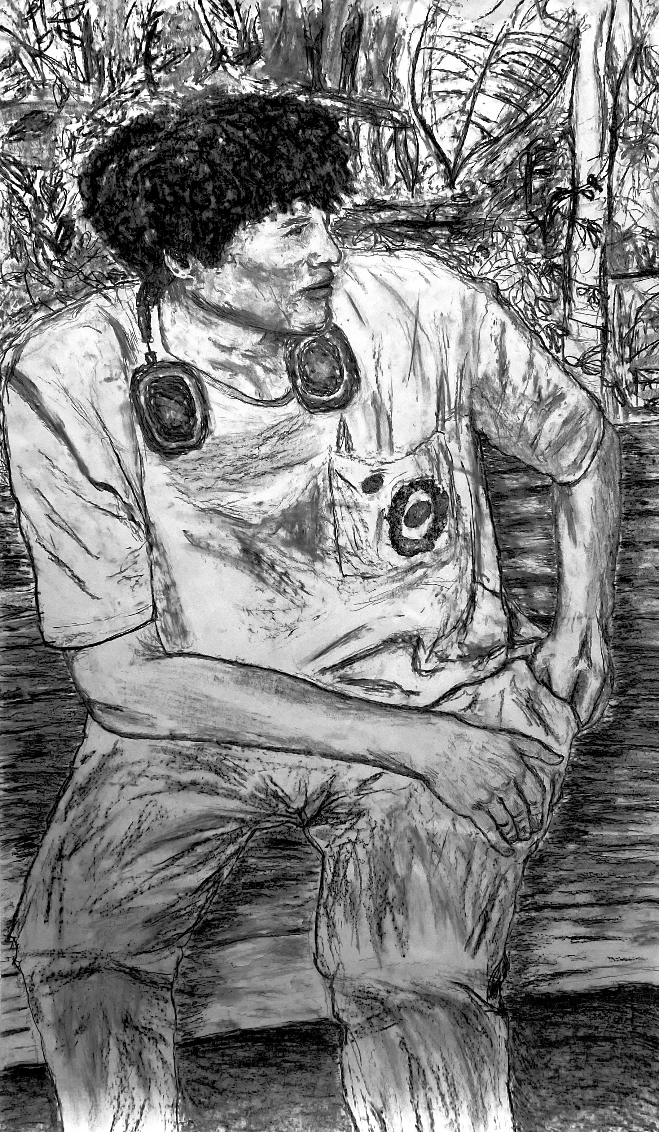 The self-portrait is aprox. 6’ x 3.3’ on newsprint. The other drawing was done on a sketchpad.